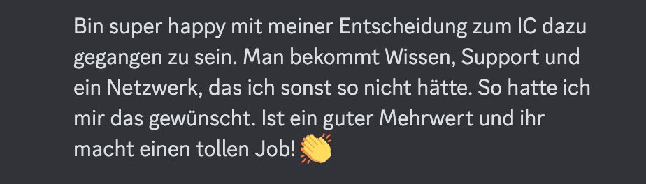 Stell dir vor, du möchtest ein guter Koch werden und würdest ein Wochenende mit ca. 300 Sterneköchen verbringen. Danach würdest Du als fabelhafter Koch nach Hause zurückkehren. Genau darauf kommt es im IC an: Dich mit Leuten zu umgeben, von denen Du lernen kannst, die Dich inspirieren und die Dir dabei helfen, Deine Lebensziele zu erreichen.